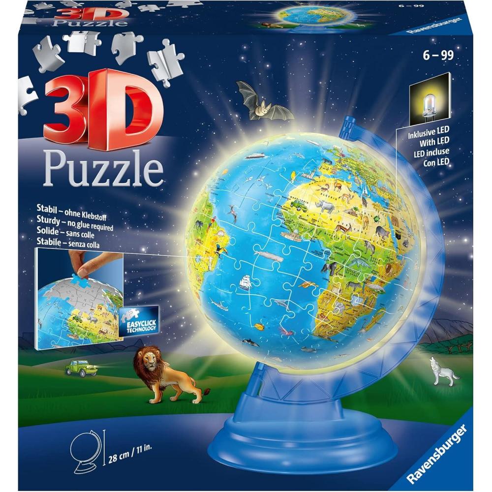 Ravensburger Children’s Globe Night Edition 3D Jigsaw Puzzle – 180 Piece Set | Features LED Light | Interactive and Educational Toy | Ideal for Kids and Adults | Model 11288