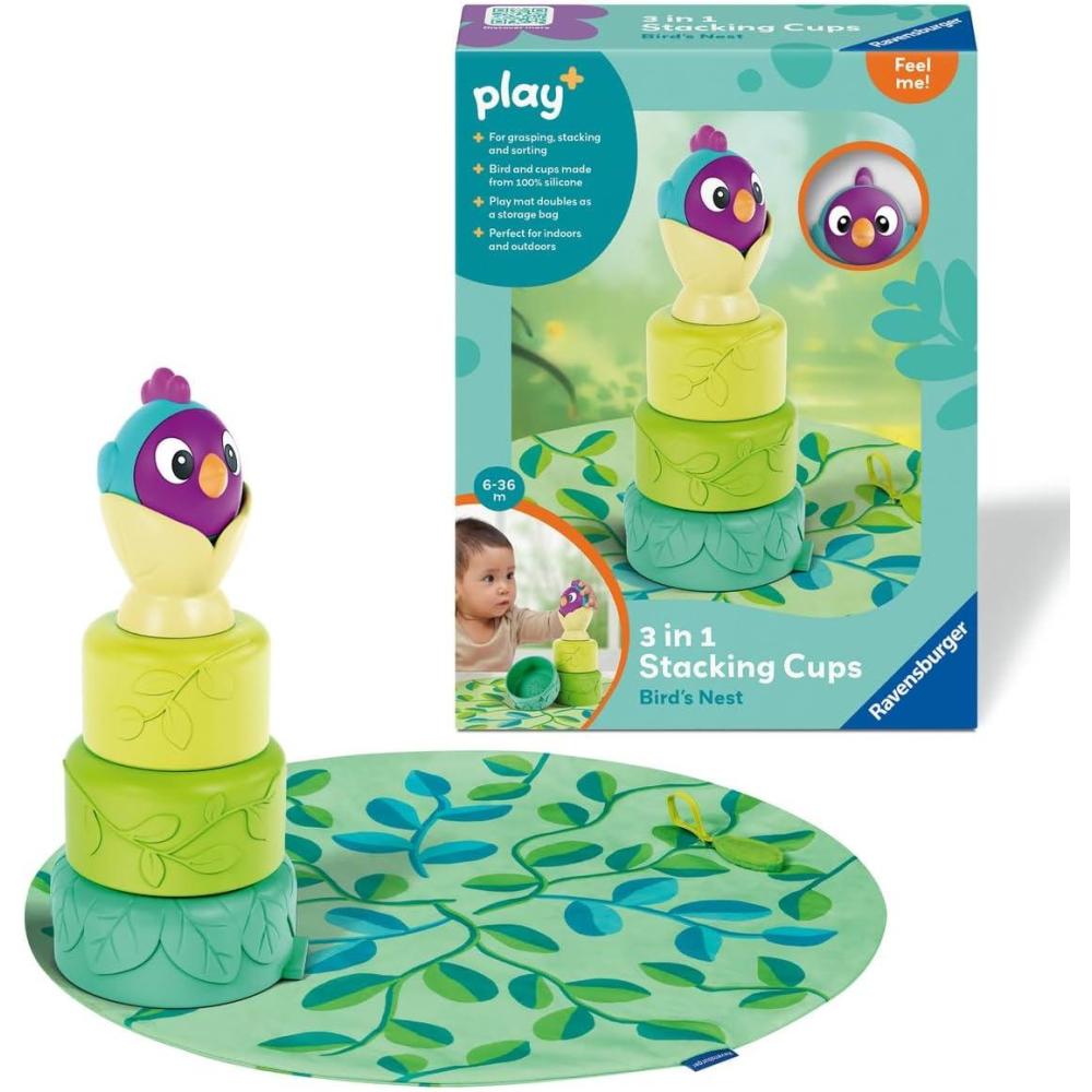 Ravensburger Play 3-in-1 Stacking Cups – Bird’s Nest | Silicone Nesting & Sorting Set | Supports Sensory Exploration