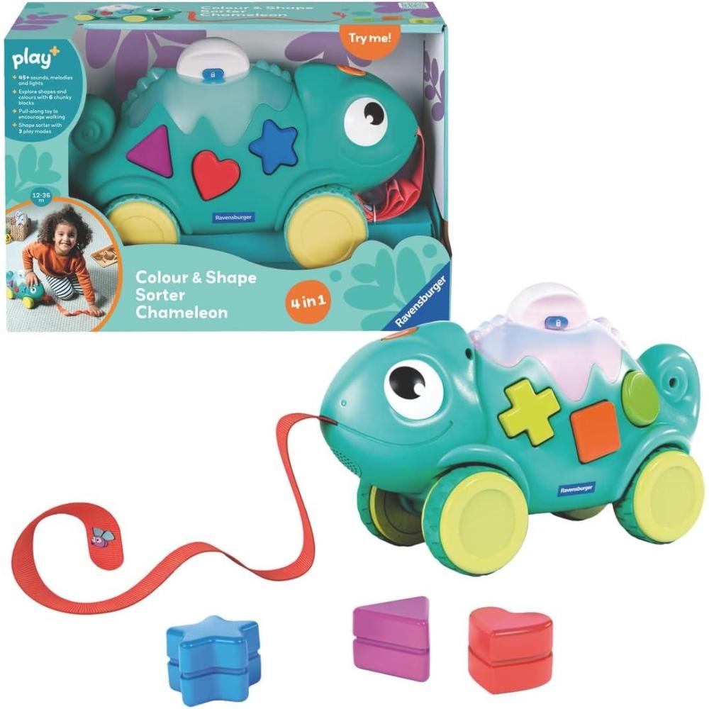 Ravensburger Play Colour & Shape Sorter – Chameleon | 3-in-1 Shape Sorting & Pull-Along Toy | Encourages Early Learning & First Steps | 6 Months and Up