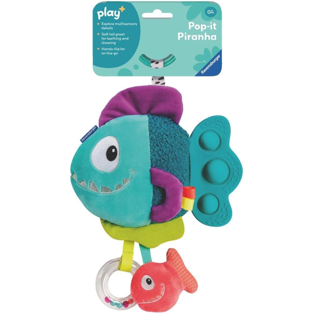 Ravensburger Play Pop-It Piranha – Blue | Crinkle, Rattle & Teether Toy | Engages Sensory & Fine Motor Skills