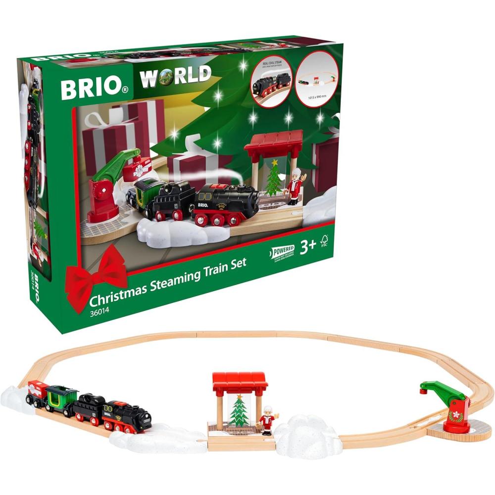 BRIO World – Christmas Steaming Train – Battery-Operated Train – 27-Pc Motorized Steam Engine for Wooden Track with Lights and Kid-Friendly Steam – Interactive Play with Forward/Reverse – for Kids 3 (BRIO World – 36014 Christmas Steaming Train Set | 27-Piece Kid-Friendly Set | Age 3 Compatible | FSC-Certified Beech Wood | Complements All BRIO Railway Sets & Accessories | Multicolor)