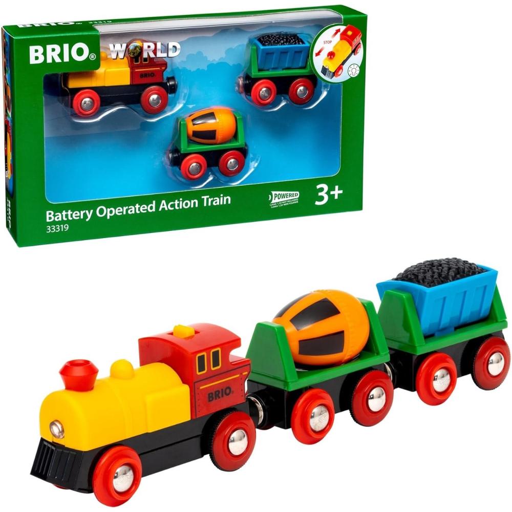 BRIO World Battery Operated Action Train – Motorized for Wooden Tracks – Kids Electric Set – Includes Moving Coal Wagon & Rotating Cement Mixer – Compatible with All Railway Sets – Kids Ages 3 & Up(Train)