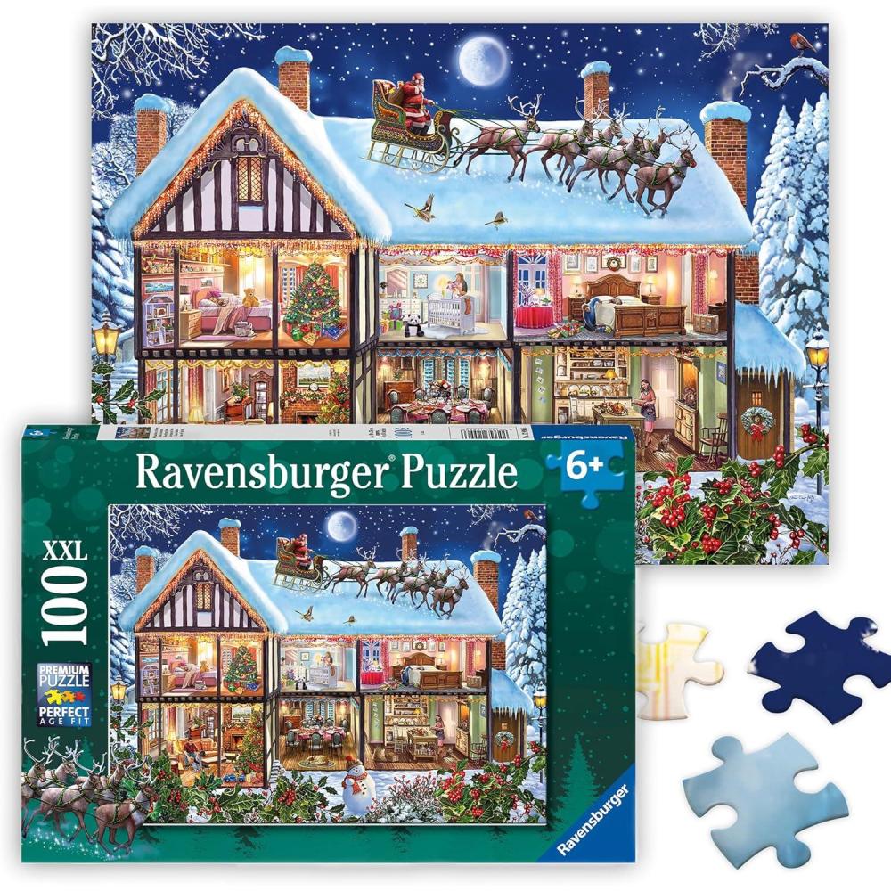 Ravensburger – Christmas at Home – 100 Piece Jigsaw Puzzle – Traditional Chalet Decorated for The Holidays – Large Puzzle Pieces for Kids – Premium Quality – Ages 6