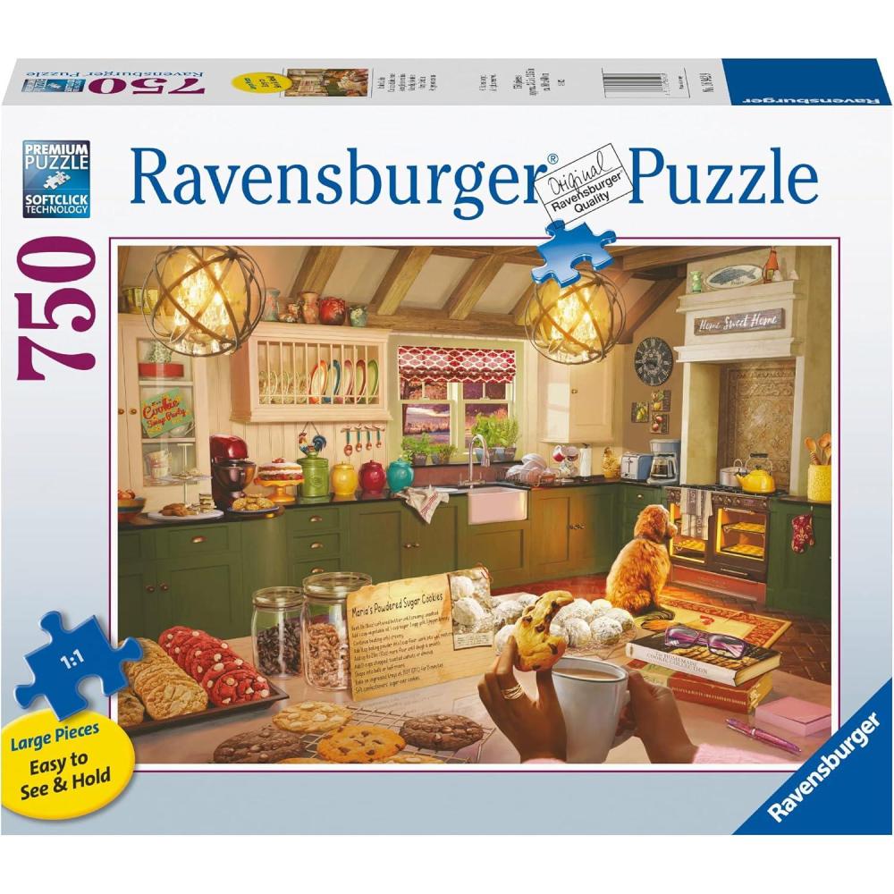 Ravensburger Cozy Kitchen 750 Piece Puzzle – Engaging Jigsaw Challenge | Unique Fit with Softclick Technology | Vibrant, Glare-Free Imagery | Ideal for Adults & Kids | FSC Certified Eco-Friendly