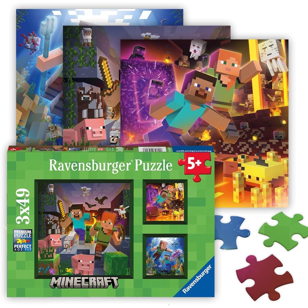 Ravensburger – Minecraft Biomes – 49 Piece Jigsaw Puzzle 3-Pack Set – Pixelated Forests, Oceans & More – Bright, Stunning Imagery – Premium Quality – Ideal Gift – Screen-Free Fun – Children Age 5
