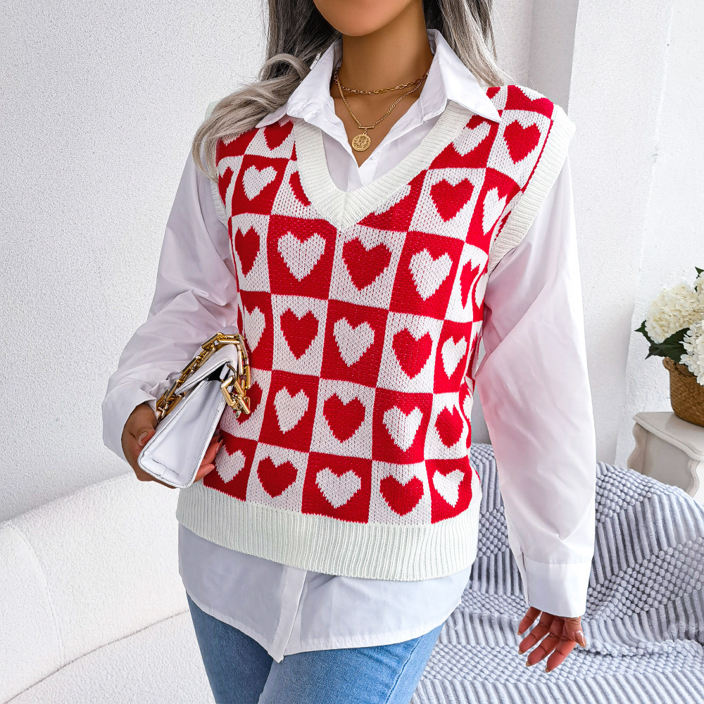 Women Knitted Sweater Vest Ladies 2022 Fashion Trend Autumn Winter Vintage College Love Heart Streetwear V-neck Tank Tops Spring