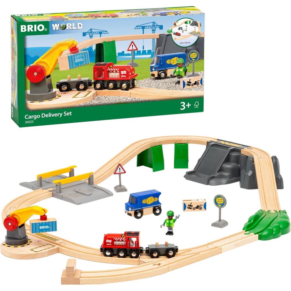 BRIO World – 36023 Cargo Delivery Set | 29-Piece Wooden Train Set Toy for Kids Age 3 Years Up